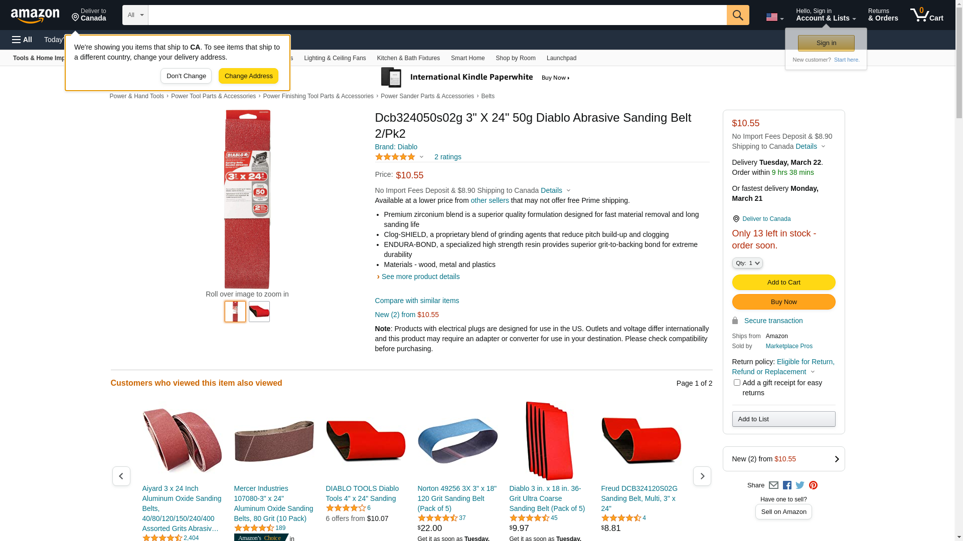 Dcb324050s02g 3" X 24" 50g Diablo Abrasive Sanding Belt 2/Pk