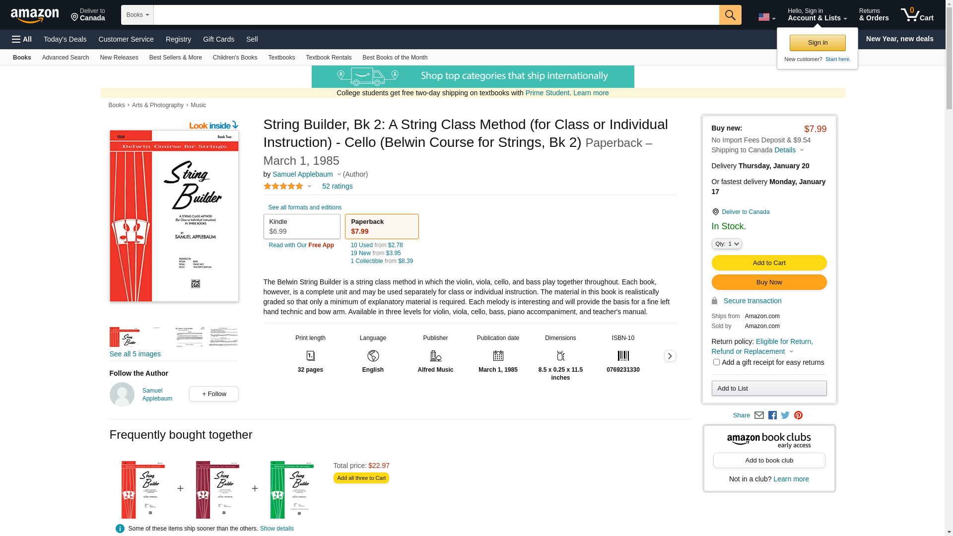 | Feature | Contributors: Samuel ApplebaumSeries: Belwin Course for StringsInstrumentation: CelloInstrument: CelloPage count: 32ISBN: 0769231330 |