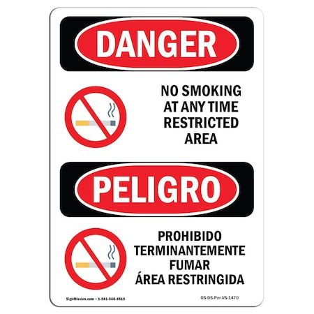 OSHA Danger, No Smoking Restricted Area Bilingual, 10in X 7in Rigid Plastic