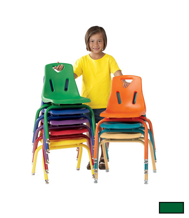 - SINGLE STACKING CHAIR POWDER COATED LEGS - 16" Ht - GREEN - stackable chair great for kids to enjoy reading, socializing, and more. Easily stacks for convenient organization and freeing up space.
