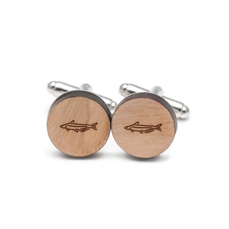 <ul> <li>Modern Wood Cufflinks Hand Made in the USA</li> <li>Materials: Made from premium cherry wood.</li> <li>Dimensions: Cufflink circle is 14mm x 14mm. 3mm thickness</li> <li>Laser Cut & Etched in USA</li> </ul>