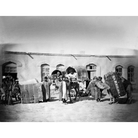 Kazakhstan Jews C1870 Njewish Men With Loaded Camels Standing In Front Of A Building In Kazalinsk Kazakhstan After Arriving From Bukhara Uzbekistan Photographed C1870 Rolled Canvas Art - (18 x 24)