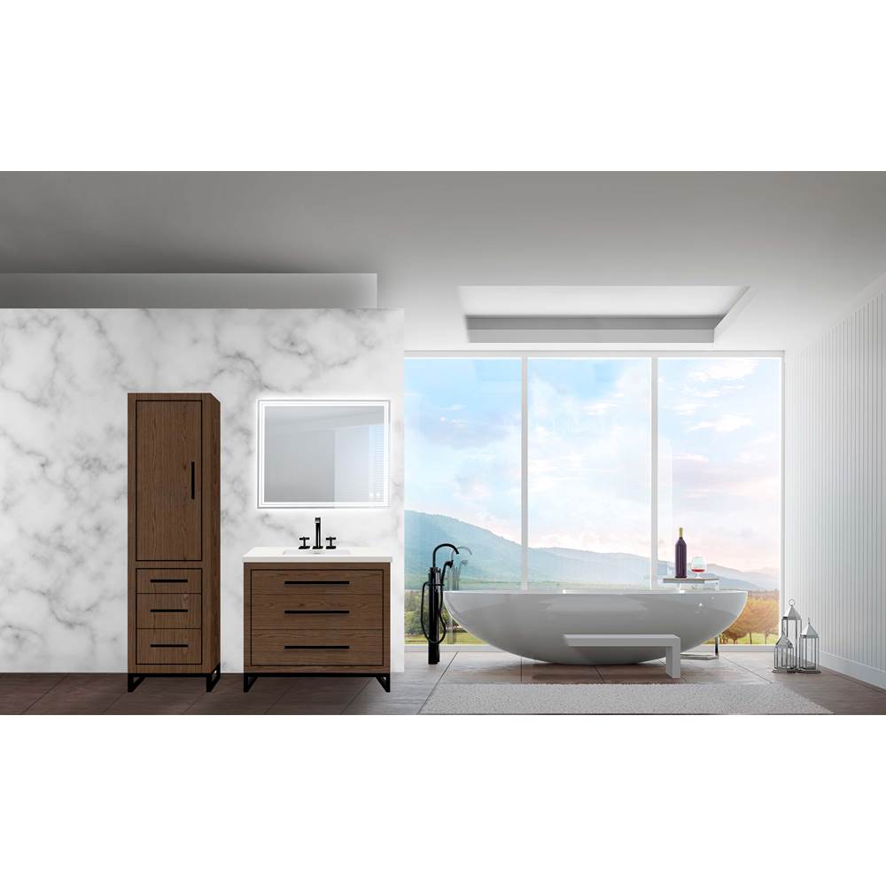 Madeli - LCES-201871-L001-LL-BR-MB - 20''W Estate Linen Cabinet, Brandy. Free Standing, Left Hinged Door. Matte, Black Handle(X4)/L-Leg(X4)/Inlay, 20'' X 18'' X 76''