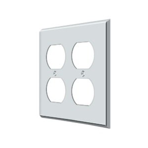 Deltana is the architectural hardware manufacturer with a proven record for exceptional service and quality. Deltana inventories the country's largest selection of architectural, lighting, and door hardware in over nine fine finishes made from solid brass, zinc, aluminum, steel and stainless steel. Dimensions: 4-1/2" x 4-1/2" Plate Has Holes for a Double Outlet Solid Brass Construction