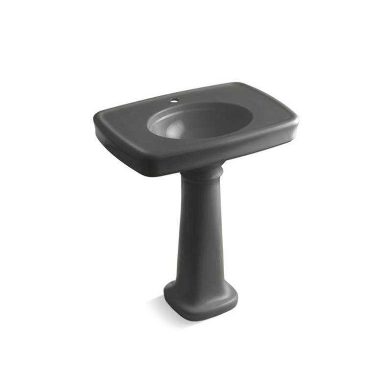 KOHLER K-2347-1-58 Bancroft Pedestal Bathroom Sink with Single-Hole Faucet Drilling, Thunder Grey