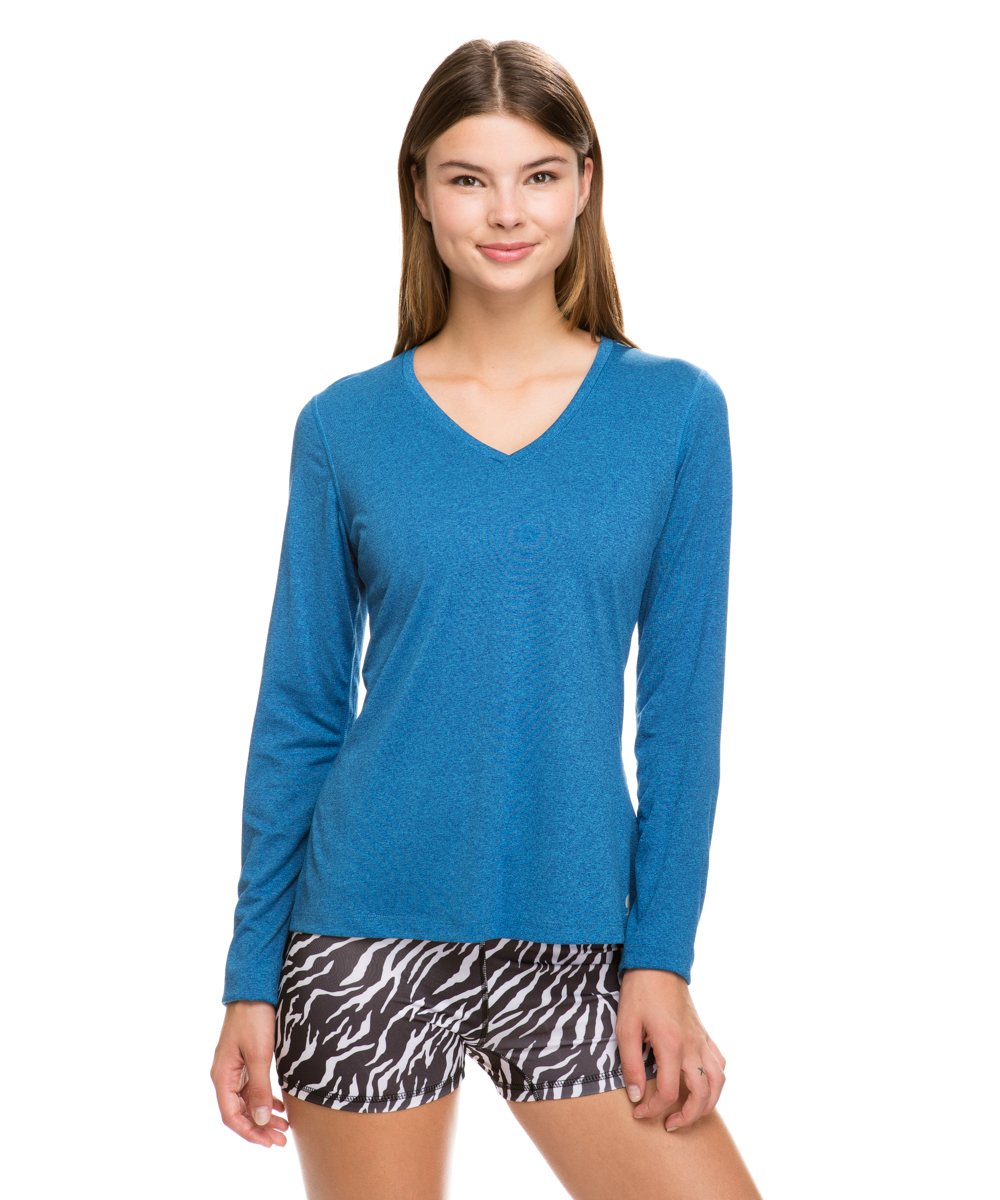 Soffe 1523V428SML Long Sleeve Melange Performace Fit Tee Shirt for Junior, Sodalite Blue Heather - Small