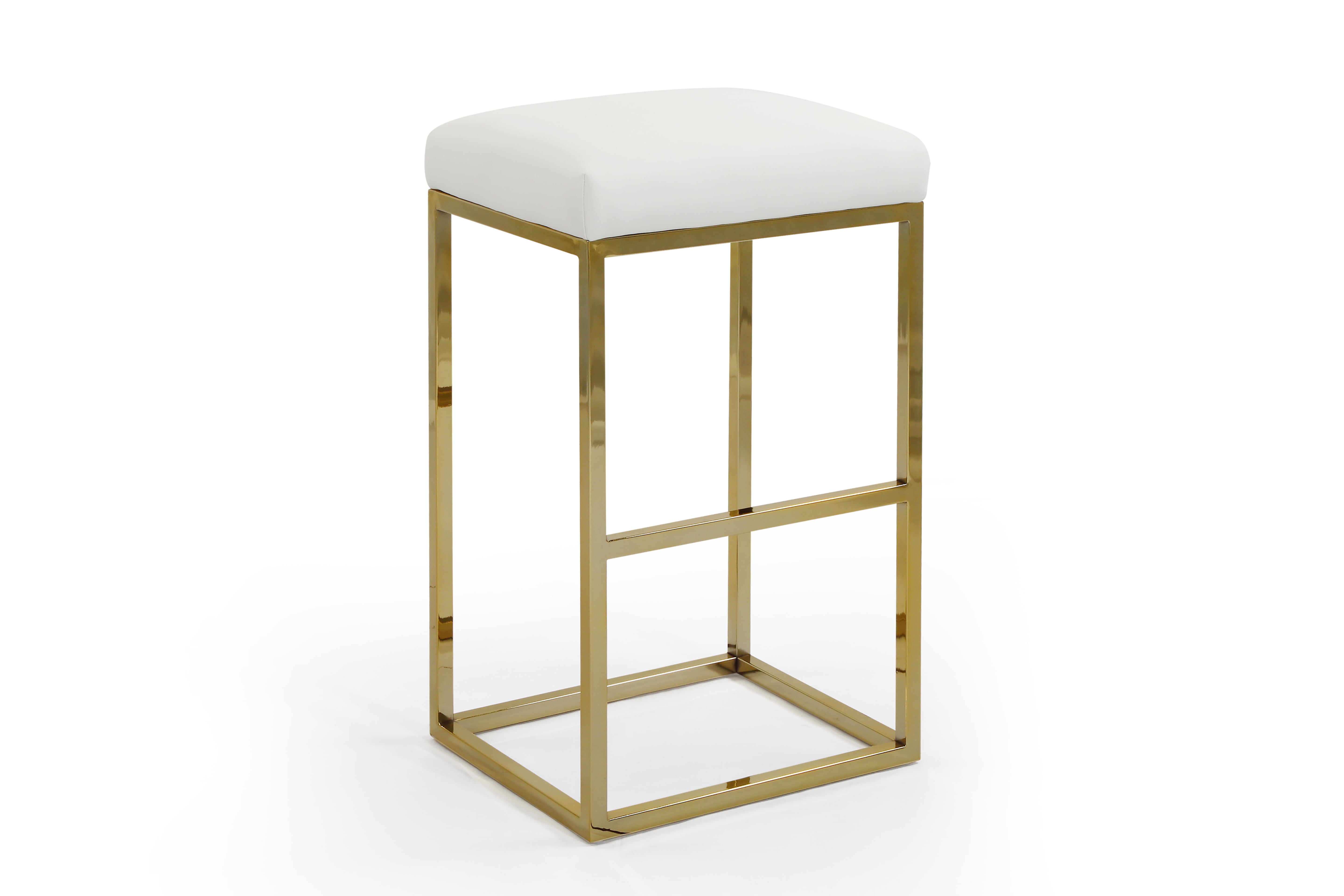 Chic Home FBS9458-US Valerie Bar Stool Chair with PU Leather Upholstered Seat Backless Design Architectural Goldtone Sol