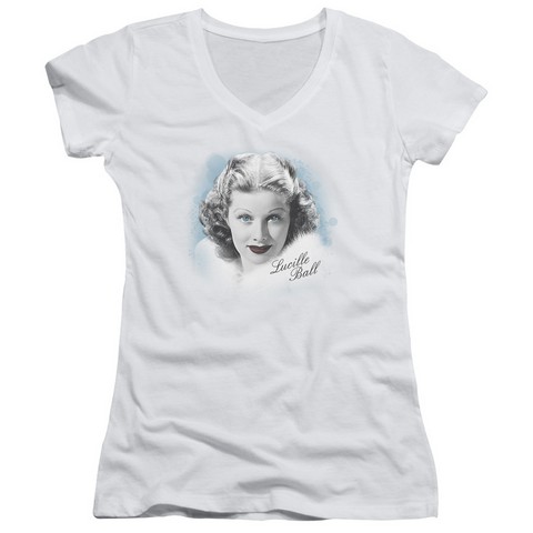 Trevco Lucille Ball-In Blue Junior V-Neck Tee, White - Medium