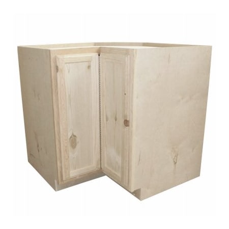 36", Pine, Unfinished Lazy Susan Base Assembled Cabinet, Solid Pine Front, All Plywood Construction Box, Flat Panel.
