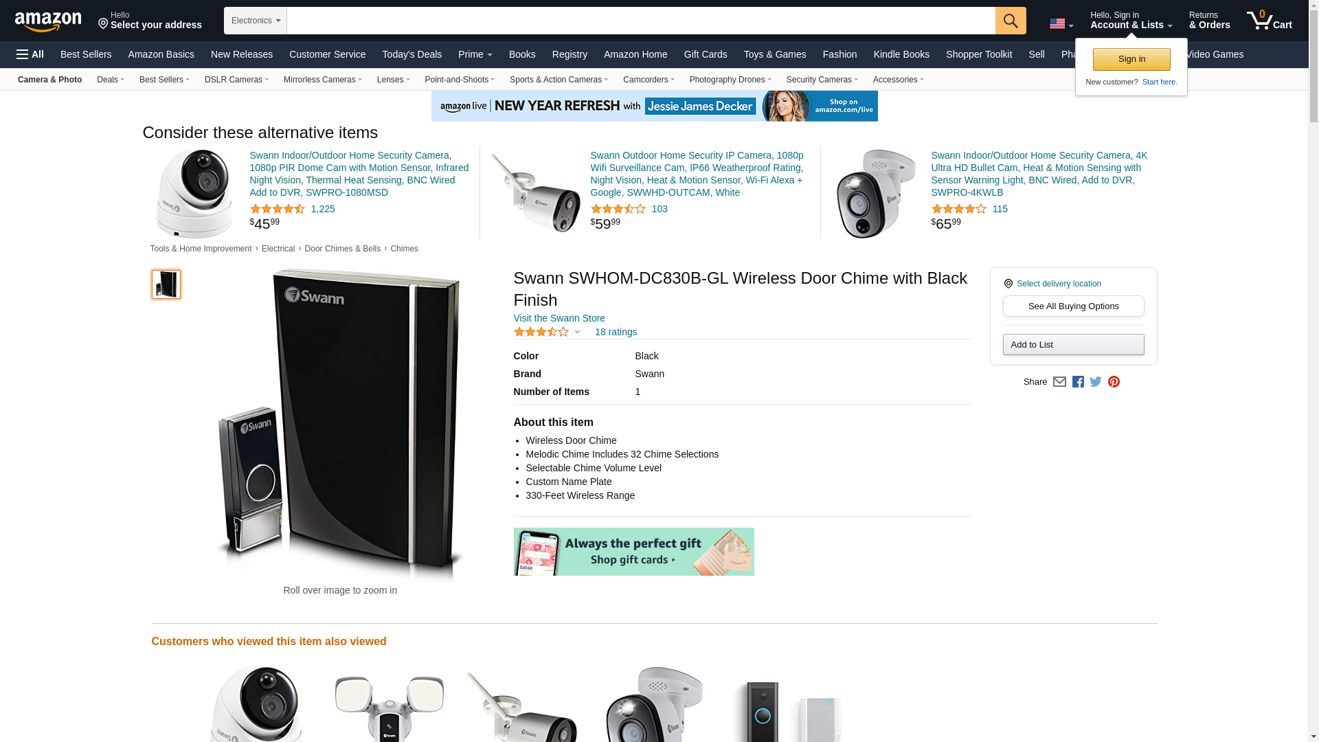 Swann SWHOM-DC830B-GL Wireless Door Chime with Black Finish