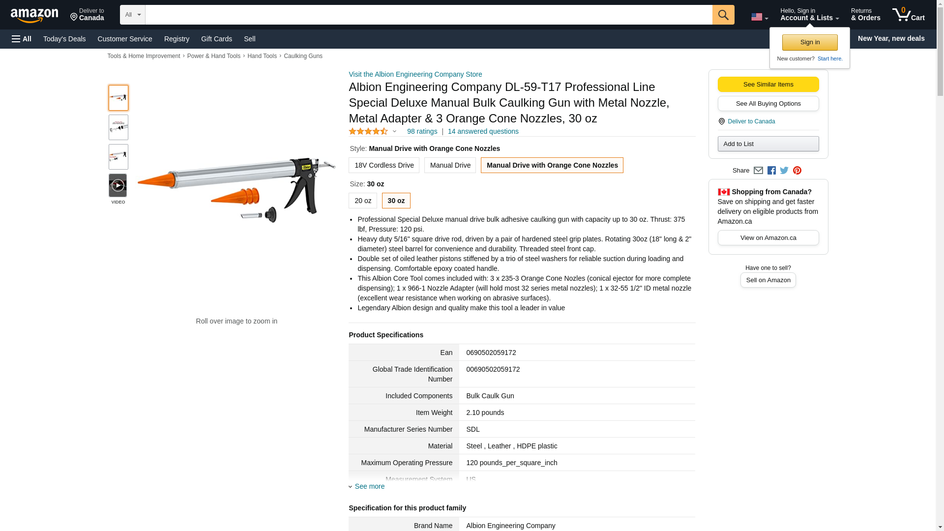 Albion DL-59-T17 30oz Special Deluxe Manual Bulk Gun w/ Orange Cone Nozzles : Caulk Guns - $84.95 EMI Supply, Inc