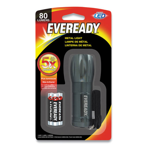 Eveready Compact LED Metal Flashlight Water Resistant, Includes 3 Super Heavy Duty AAA Batteries, 21 Lumens , Black