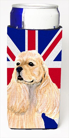 Caroline's Treasures SS4964MUK Cocker Spaniel Buff with English Union Jack British Flag Ultra Hugger for slim cans Can Cooler Sleeve Hugger Machine Washable Drink Sleeve Hugger Collapsible Insulator B