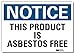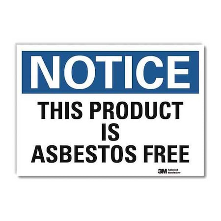 Notice Sign, Horizontal Rectangle, Number of Printed Sides 1, English, Sign Format Traditional OSHA, Sign Legend This Product Is Asbestos Free, Sign Legend Background Color White, Sign Legend Style Text