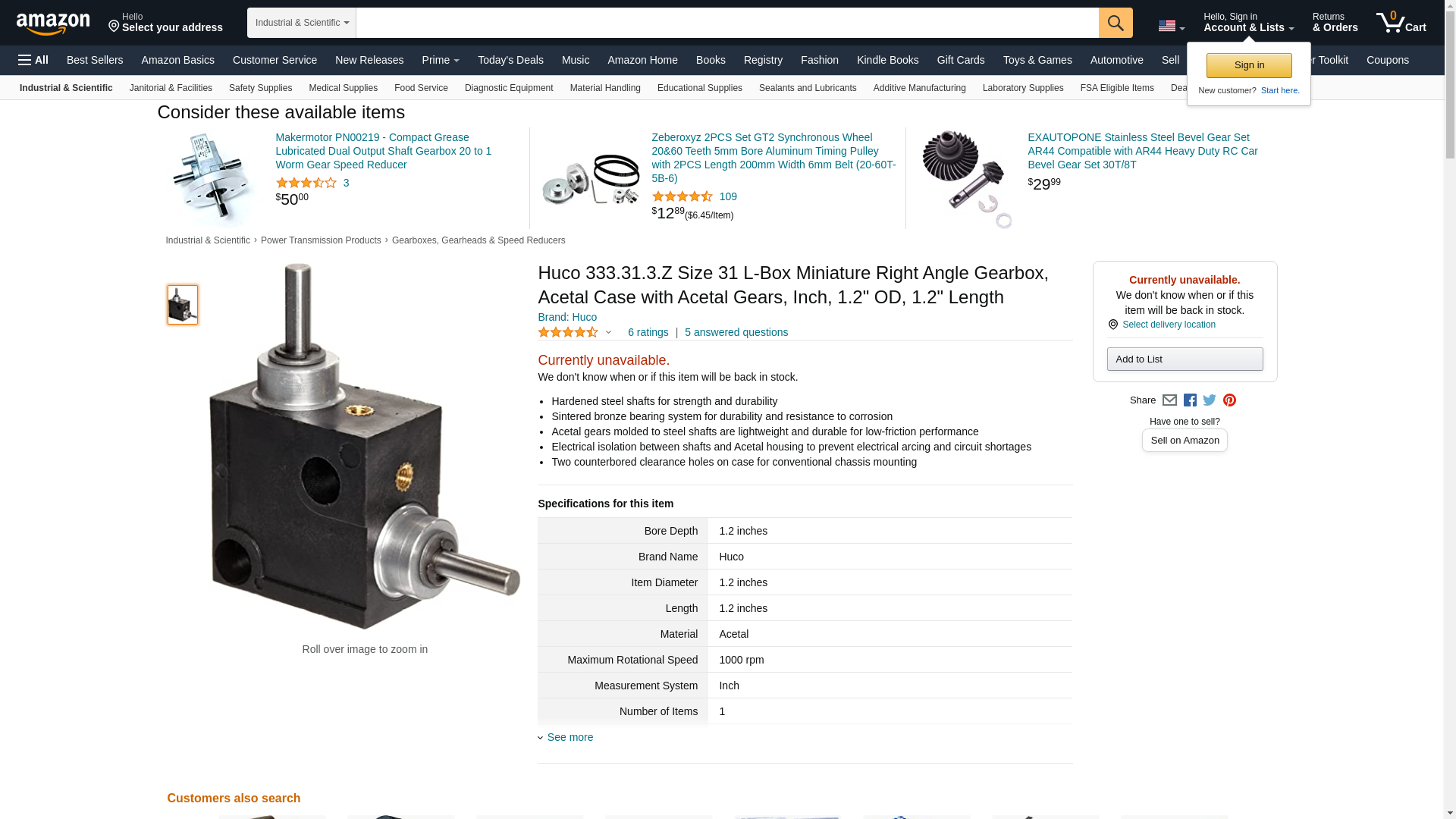 Huco 333.31.3.Z Size 31 L-Box Miniature Right Angle Gearbox, Acetal Case with Acetal Gears, Inch, 1.2" OD, 1.2" Length