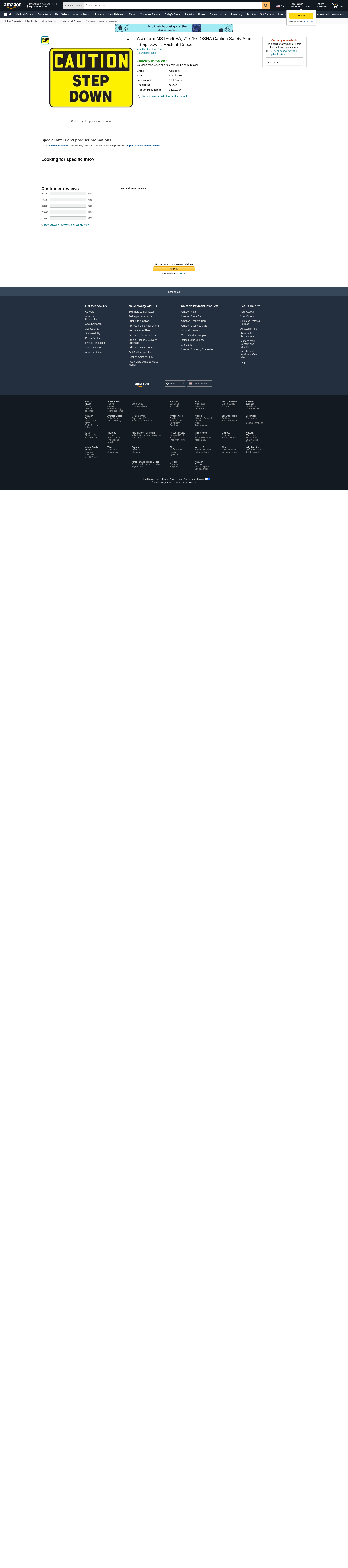 Order MSTF646VA by Accuform 7" x 10" OSHA Caution Safety Sign "Step Down" - US Mega Store