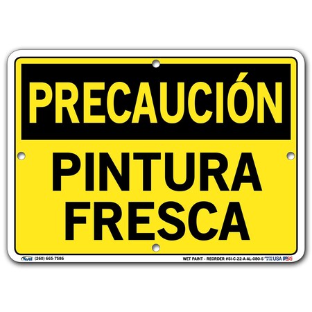 Vestil Caution Sign SI-C-22-A-AL-080-S Aluminum .080" Overall Size 10.5"W x 7.5"H Wet Paint, PINTURA Fresca