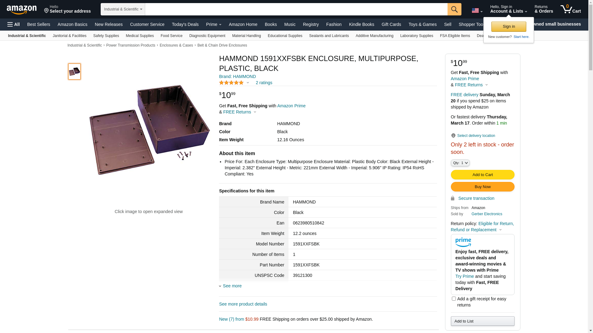 | 1591XXFSBK | 1 | This Item Usually Ships Next Day | 1 | 1 @ $9.39 | |