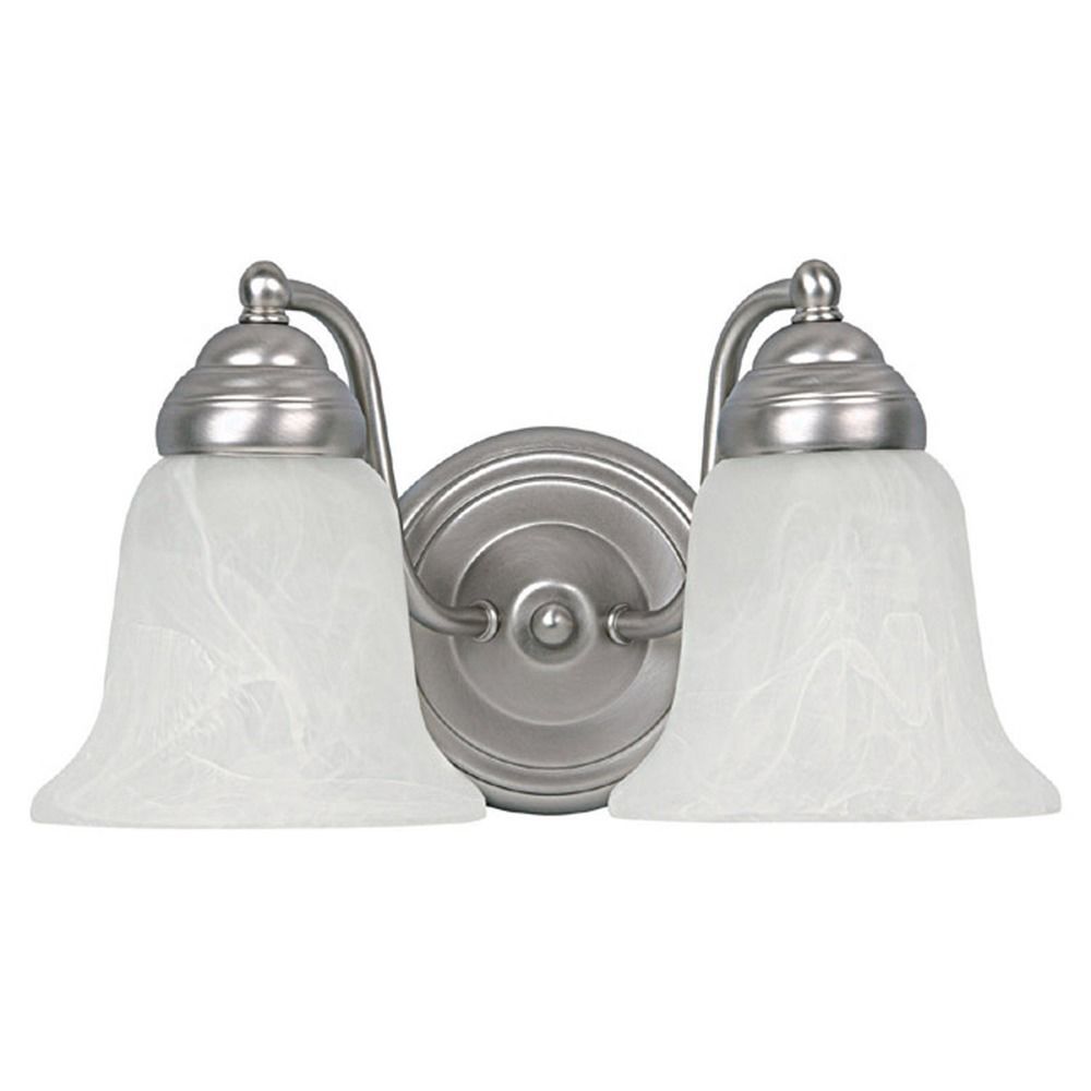 Traditional and timeless, the Alabaster 2-Light Vanity has evokes classic charm. Multiple finish and lamping options make this fixture easy to use with a variety of styles. <UL>Warranty: 1 Year<LI>Room Recommendation: Bathroom/Powder Room / Mounting Direction: Up or Down / Shade Included: Yes.