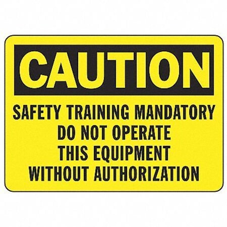 Accuform MEQM702VA Aluminum Sign, Legend "Caution Safety Training Mandatory DO NOT Operate This Equipment Without", 7" Length x 10" Width, Black on Yellow