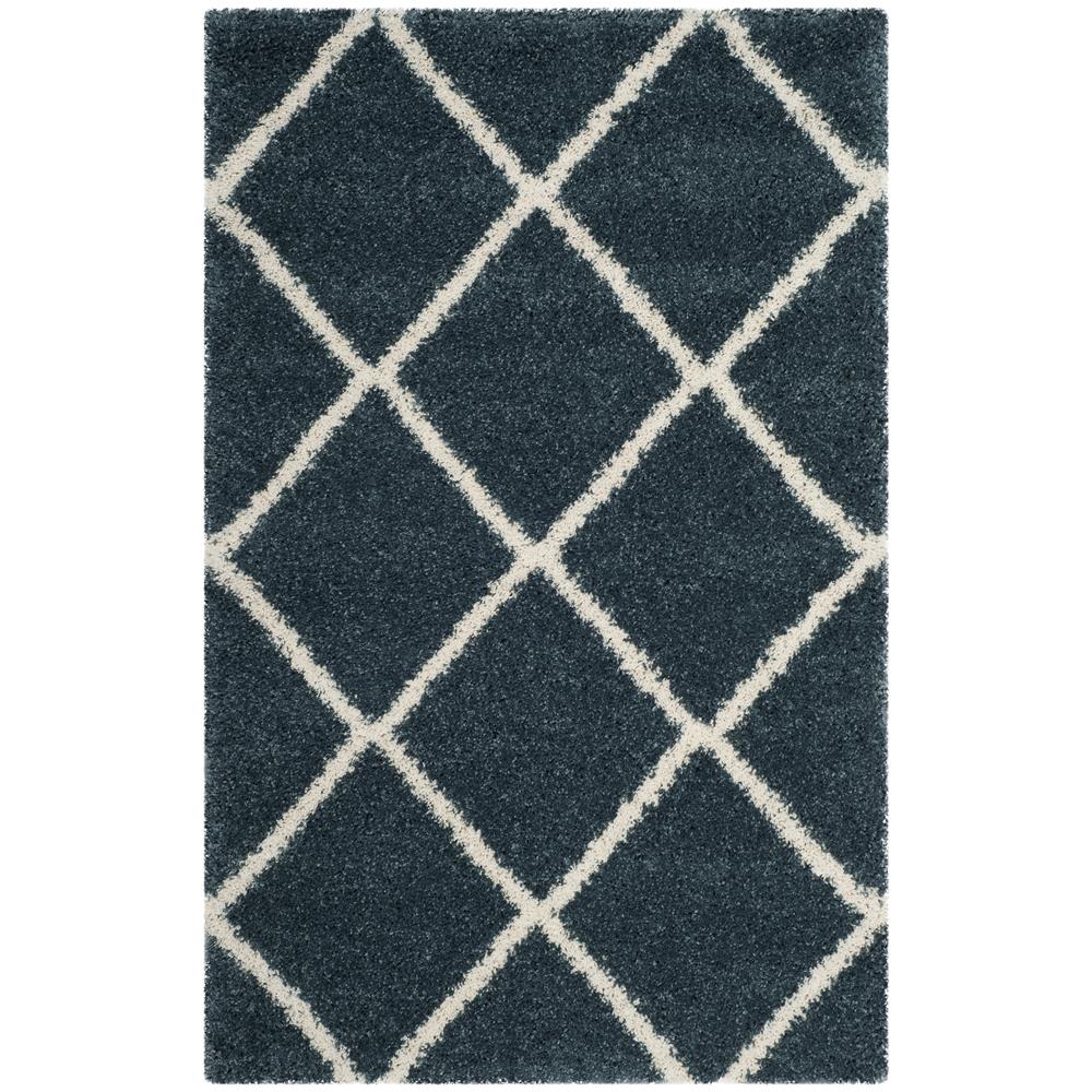 SAFAVIEH Hudson Shag Collection Accent Rug - 3' x 5', Slate Blue & Ivory, Trellis Design, Non-Shedding & Easy Care, 2-inch Thick Ideal for High Traffic Areas in Foyer, Living Room, Bedroom (SGH281L)