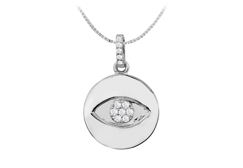 Fine Jewelry Vault UBPD2936W14D Diamond Evil Eye Disc Pendant in 14K White Gold 0.15 Carat Diamonds