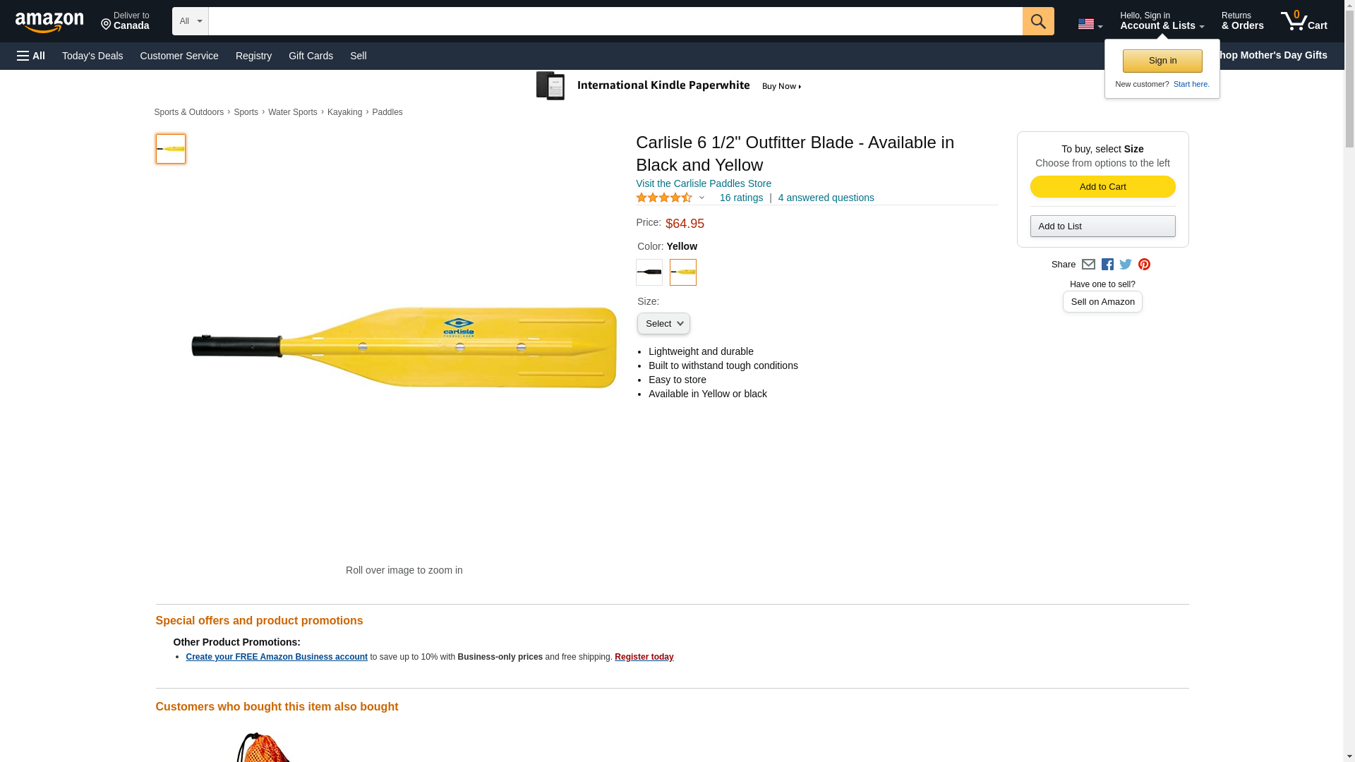 Carlisle Oar Outfitter 26" x 6.5" Blade Assembly - Yellow | Omni Outdoor Living