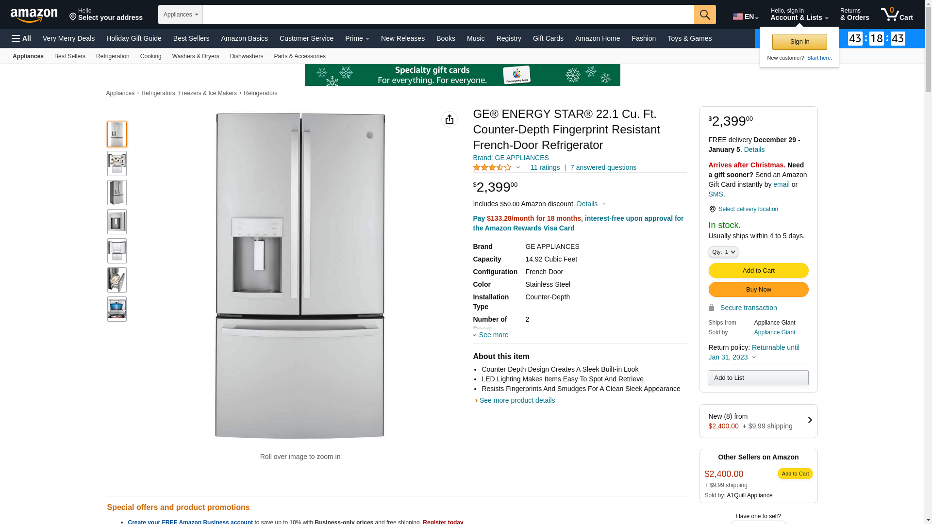 ![]() abt.com | GYE22GYNFSS | 1 | 1 | 1 @ $3129.00 |