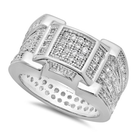 Rhodium Plated Micro-Pave Iced Out Cubic Zirconia Band Ring + Microfiber Jewelry Polishing Cloth