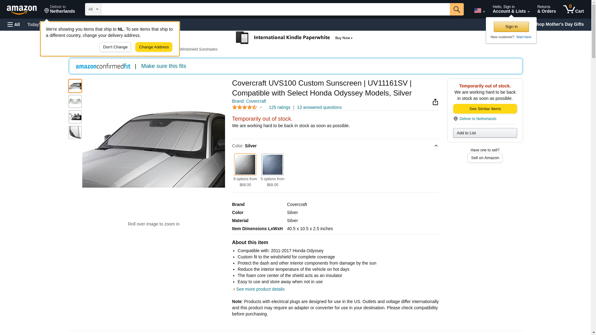 Covercraft UVS100 Custom Sunscreen | UV11161SV | Compatible with Select Honda Odyssey Models, Silver
