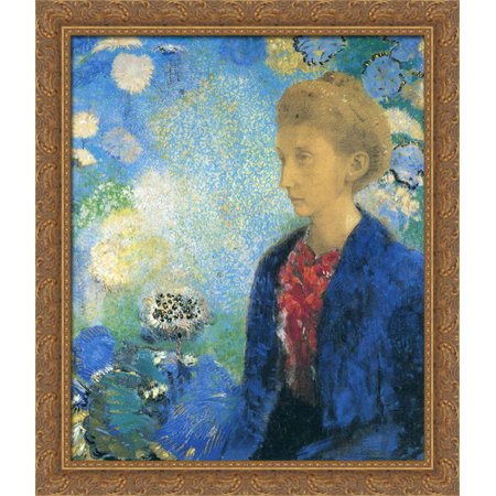 Woman in Profile under a Gothic Arch 28x32 Large Gold Ornate Wood Framed Canvas Art by Odilon Redon