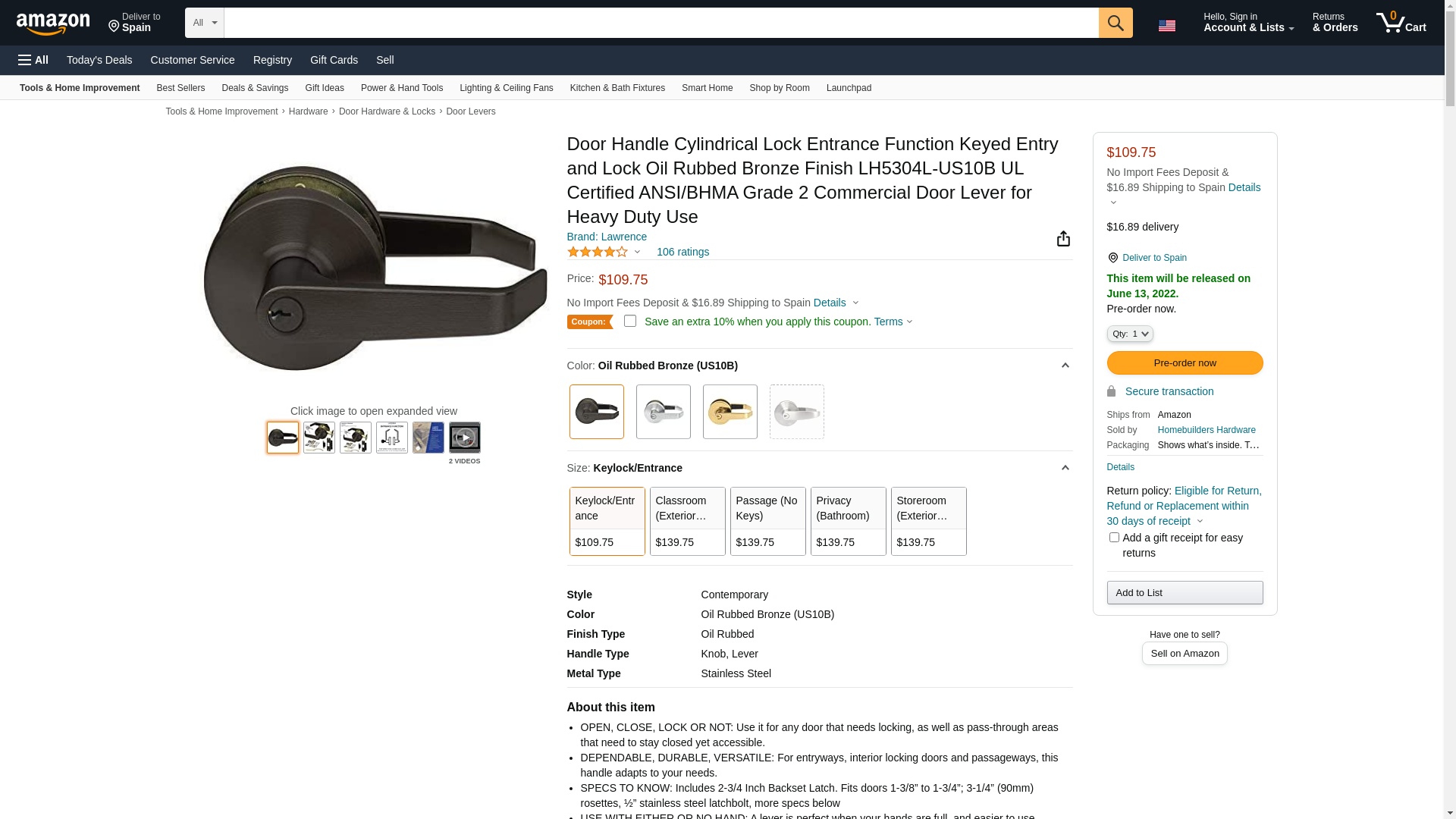 Door Handle Cylindrical Lock Entrance Function Keyed Entry and Lock Oil Rubbed Bronze Finish LH5304L-US10B UL Certified ANSI/BHMA Grade 2 Commercial Door Lever for Heavy Duty Use