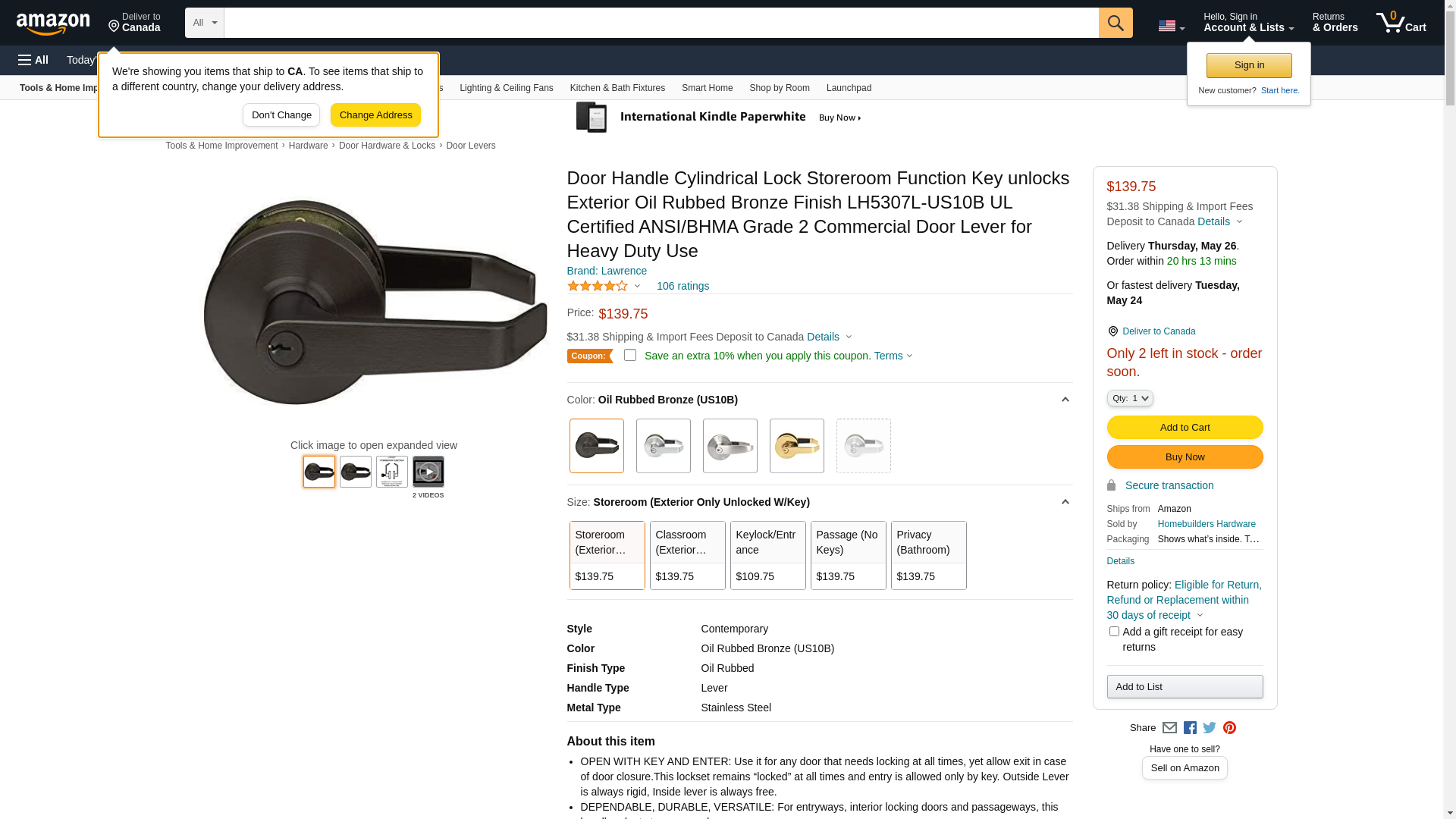Commercial Cylindrical Lever Heavy Duty Non-Handed Grade 2 Door Handle Lawrence LH5307L (Storeroom (Exterior Only Unlocked W/Key), Oil Rubbed Bronze (US10B))