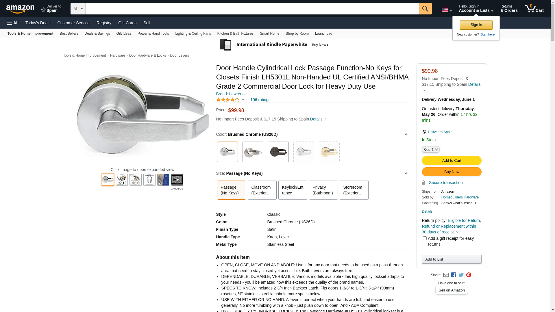 Commercial Cylindrical Lever Heavy Duty Non-Handed Grade 2 Door Handle Lawrence LH5301L (Passage (No Keys), Brushed Chrome (US26D)): Maxedbuy.com