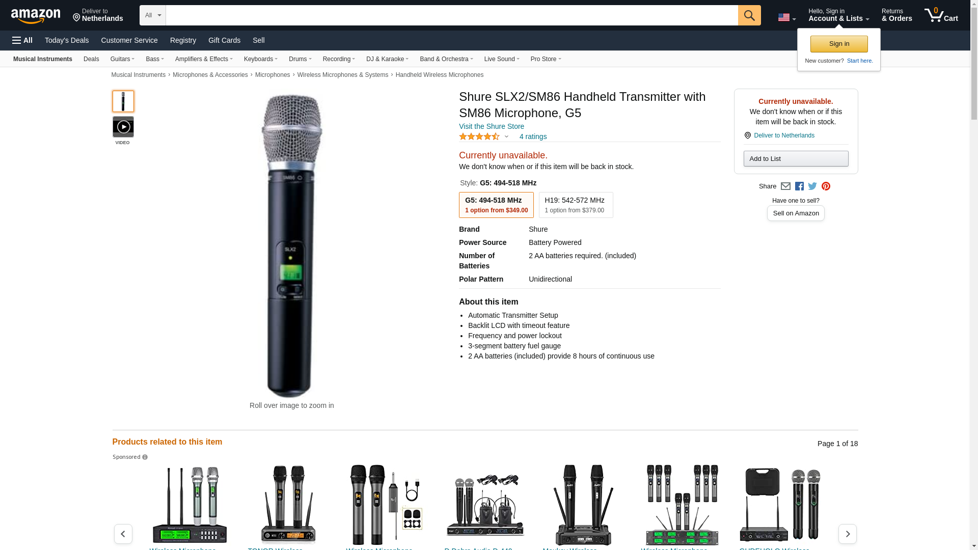 - Handheld SLX series SM86 Mic/Transmitter For Use With Shure SLX4 Wireless Receiver