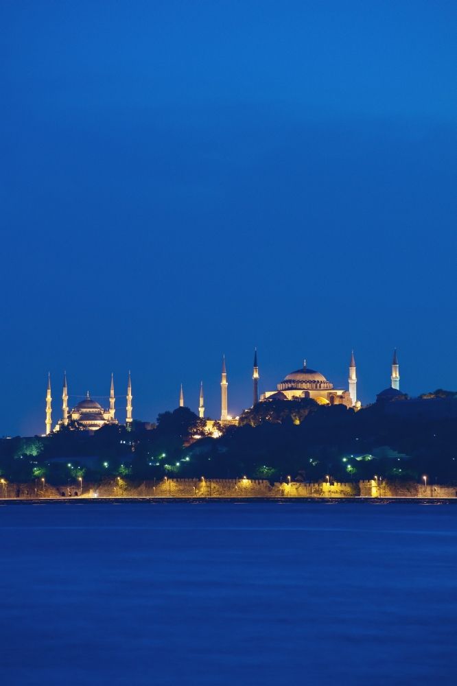Posterazzi DPI1892994 Turkey, Sultanahmet or Blue mosque & Hagia Sofia at dusk - Istanbul Poster Print, 12 x 19