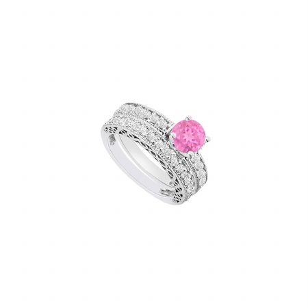 Fine Jewelry Vault UBJS622ABW14DPS 14K White Gold Pink Sapphire & Diamond Engagement Ring With Wedding Band Set - 1.50 C