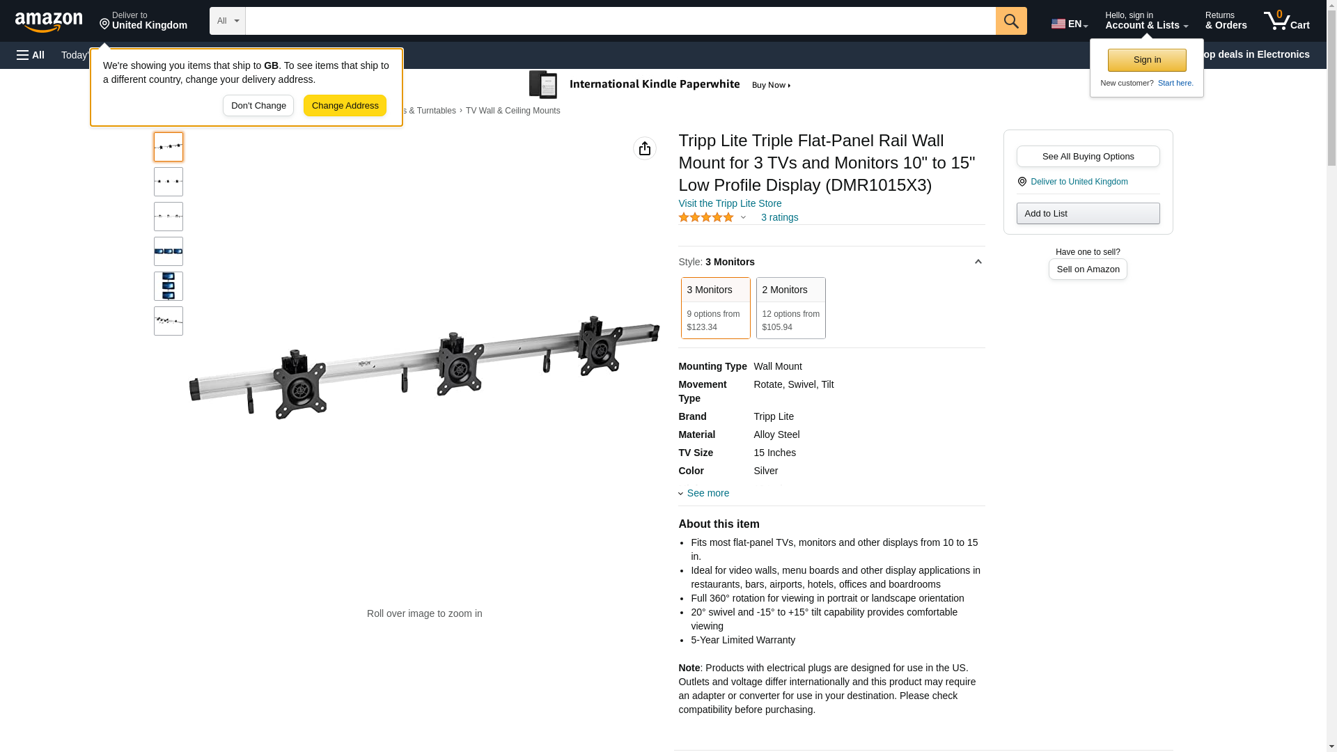 Tripp Lite Triple Flat-Panel Rail Wall Mount for 10? to 15? TVs and Monitors