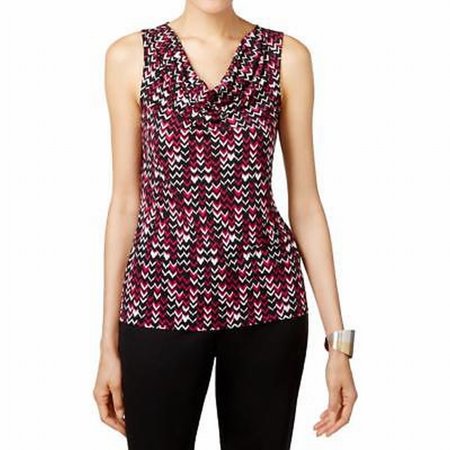 Tahari NEW Purple Womens Size Large L Cowl-Neck Printed Stretch Blouse