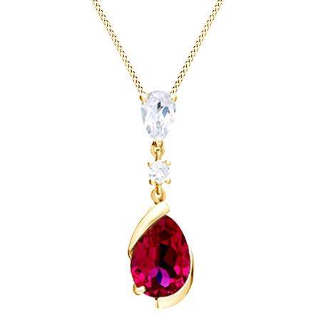 <ul> <li>Metal Type : 14k Solid Yellow Gold GUARANTEED, Authenticated with a 14k Stamp</li> <li>Gem Type : Simulated Ruby & Sapphire</li> <li>Stone Color : Red & White</li> <li>Stone Clarity : VVS1-VVS2</li> <li>Stone Shape : Pear Shape & Pear Shape</li> <li>Setting : Prongs</li> </ul>