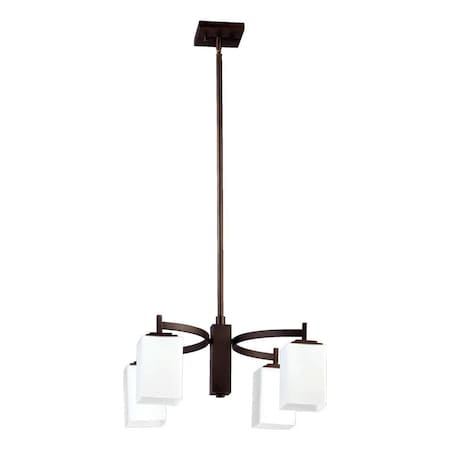 Quorum International 6384-4-86 Delta 4 Light Nook Chandelier In Oiled Bronze With Satin Opal Shade
