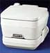 Dometic 964 Portable Toilet ParchmentFor convenience that lets you venture anywhere!Durable design, drop it, stand on it - this unit can take it! Attractive matte finish. Scratch-resistant finish is easy to keep clean; looks new for years. Comfortable! Adult size seat and lid provide comfort and safety; side latches lock firmly for added Features: Self-contained 2.5 gallon (9.5 L) freshwater supply models offer enough capacity for 30-50 uses High-density polyethylene construction withstands demanding marine environment Top-mounted port offers easy in-vessel filling. Scratch-resistant matte finish is easy to keep clean and looking good for years Comfortable and secure, the adult size seat and firm locking side latches assure user satisfaction MSD models can be installed for direct overboard, dockside pump-out, or remote tank discharge Parchment and platinum colors Model 964 - . () capacity portable toilet, mounting brackets Water Supply: Self-contained freshwater () upper tank. Discharge: Standard models - discharge spout in bottom tank. MSD models - PVC fitting connects to . (38 mm) ID discharge plumbing. Vent: 5/8-in. (16 mm) ID hose fitting (MSD models only).