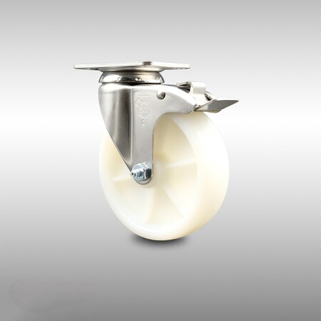 Service Caster Brand 5 Inch 316 Stainless Steel Light Duty Swivel Caster Wheel Nylon Wheel – 300lbs./Caster – Swivel Plate Caster with Total Lock Brake