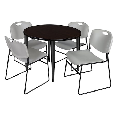- Versatile table and chair set includes one 42-inch round table with modern black tapered legs and 4 Grey Zeng Stack Chairs