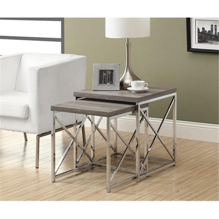 Dark Taupe Reclaimed Look and Chrome Nesting Tables Set of 2