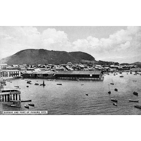 Stretched Canvas Art - Panama Harbor, C1910. /Nview Of The Harbor And Part Of Panama City, Panama, On The Pacific Ocean. Postcard, C1910. - Medium 18 x 24 inch Wall Art Decor Size.