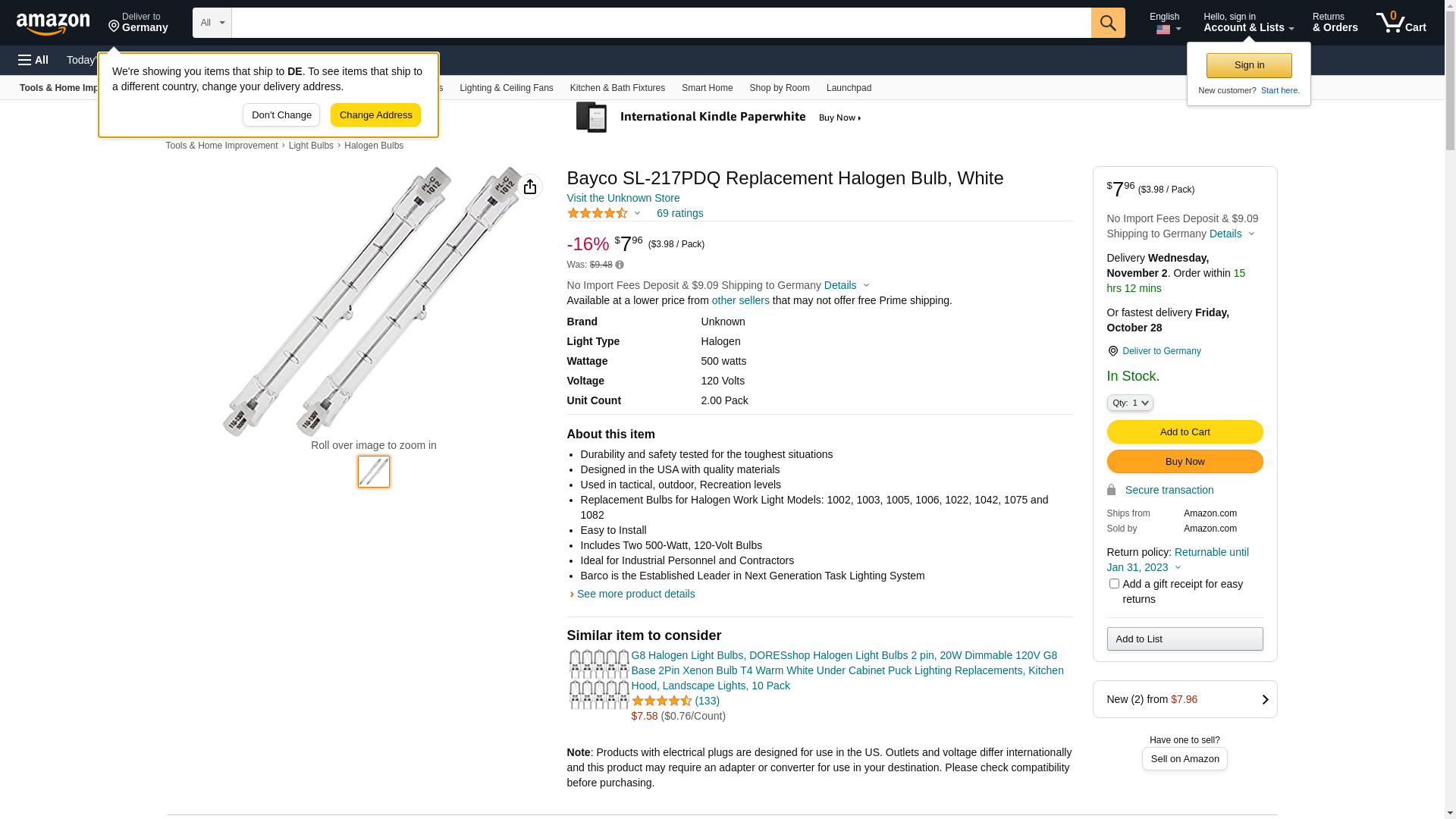 Bayco Products BAYSL-217PDQ Replacement Halogen Bulb, 500 Watt, for Halogen Work Lights, Two per Pack.