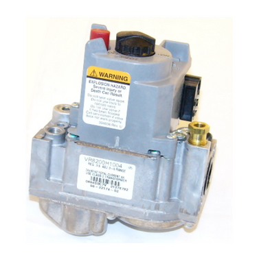Gas Valve Honeywell VR8200H1004 60-22174-02 Technical Data » Valve Series: VR8200 Fuel Type: Natural Gas Capacity (BTU/HR @ 1 in. W.C. Pressure Drop): 150,000 Opening Type: Slow Ignition System: Pilot No. of Stages: 1 Input Fitting Size NPT (in.): 1/2 Output Fitting Size NPT (in.): 1/2 Valve Body Length (in.): 4-1/8 Valve Body Width (in.): 2-11/16 Valve Body Height: (in.): 5-3/16 LP Spring Kit: 60-22513-03 Natural Gas Spring Kit: 60-23430-01 LP Conversion Kit Included: No Used on: RGDG (BA, BB, BL, BG, CB, CC) Standing pilot All Gas Valves Should Be Installed By A Licensed Professional. FAILURE TO READ AND FOLLOW ALL INSTRUCTIONS CAREFULLY BEFORE INSTALLING OR OPERATING THIS CONTROL COULD CAUSE PERSONAL INJURY AND/OR PROPERTY DAMAGE. Helpful Accessories: 25551 Rectorseal Pipe Thread Sealant #5 - 1/2 Pint 16149 Bramec White Teflon Tape 3/4" X 520' 29436 Gas Pressure Test Kit Manometer J/B Black Gas Pipe Fittings