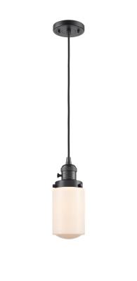INNOVATIONS 201CSW-OB-G311 1-Light Mini Pendant Oil Rubbed Bronze. Collection: Franklin Restoration. Style: Traditional. Metal Finish: Oil Rubbed Bronze. Metal Finish (Canopy/Backplate): Oil Rubbed Bronze. Material: Steel, Cast Brass, Glass. Dimension(in): 10.25(H) x 4.5(W) x 4.5(Dia). Min/Max Height (Fixture Height with Cord or Included Stems & Canopy)(in): 13.75/131.75. Wire/Cord: 10 Feet Of Black Textured Cord. Bulb: (1)60W Medium Base,Dimmable(Not Included). Maximum Wattage Per Socket: 100. Voltage: 120. Color Temperature (Kelvin): 2200. CRI: 99.9. Lumens: 220. Glass Shade Description: Matte White Cased Dover. Glass or Metal Shade Color: Matte White. Shade Material: Glass. Glass Type: Frosted. Shade Shape: Cylinder. Shade Dimension(in): 4.5(W) x 6.5(H). Fitter Measurement (Glass Or Metal Shade Fitter Size): 3.25 inch Fitter. Canopy Dimension(in): 4.5(Dia) x 0.75(H). Sloped Ceiling Compatible: Yes. California Proposition 65 Warning Required: Yes. UL & ETL Certification: Damp Location.