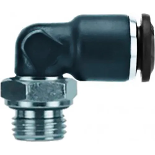 Push to Connect Tube Fitting - Nickel Plated Brass w/ Plastic Release Ring - Male Elbow (Swivel) - 6mm Tube OD x M12x1-1/2" Metric Male